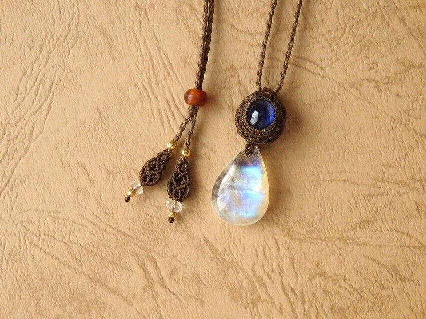 .·˖*✩⡱ブルームーンストーン × サファイアマクラメペンダント