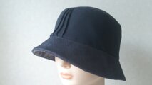 裏クラウンは薄手のポリエステル、ブリムは綿とポリエステルのシルキーなブラックデニム。