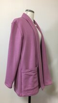 流行のコーディガン、ニットなので軽くシワも気にならず今からの季節サッと羽織るのに重宝すると思います。 襟元は二重になります。