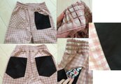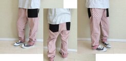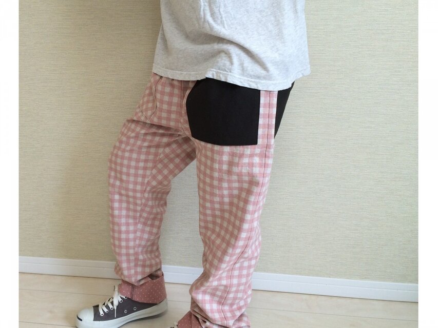 ※オーダー品※綿麻のゆるパンツ152(ピンクチェック)