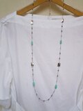 スワロフスキー・ターコイズ・ブラックシェルのロングネックレス