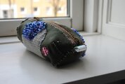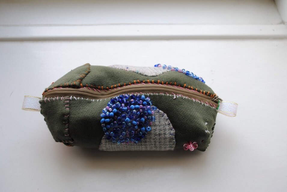 カーキをベースにパッチワークやビーズで飾りました。