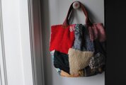 様々な素材のパッチワークバッグです。少しビーズも飾りました。
