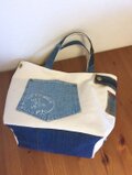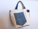 こちらは、生成りの帆布をベースに、デニムを色々に配置。