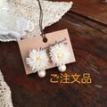 布花ピアス オフホワイトのオーガンジーデージーとコットンパール