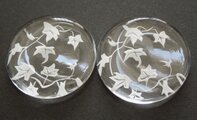 箸置き用のガラスの裏面にデザインを彫り込み、色付けをしています。