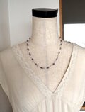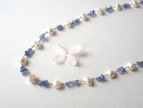 ”サムシングブルー”。何か青いものを身につけると幸せになるという西洋のおまじない。本当は目立たないところにつけるらしいですが、特にウェディングにではなくても、幸せの色“ブルー”と柔らかな光沢の白いパールはとても素敵な組み合わせ。すっきりとして柔らかく、とても綺麗な色合いのネックレスです。前回のものとは異なり、バロックパールが少し小さめなので、その分タンザナイトのチップを多めにしましたので、パール色と青色は半分ずつぐらいの割合。パールはどこにつけていっても上品で華やかになります。タンザナイトのチップはラフな手作り感があり、普段使いにも。