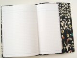 リバティの人気生地、ヨシエ Yoshie(ダークグリーン)のラミネート生地(つや無)でA5サイズのノートカバーを作りました。