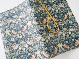 この生地の名、ストロベリーシーフとは「いちご泥棒」という可愛らしい名前なんですね。繊細なお花と鳥の柄が少し大人っぽく素敵です。 この柄は、ウィリアムモリスがリバティのために描いた長く愛されている定番の柄で、私もお気に入りです。
