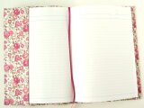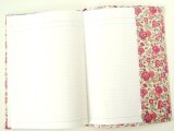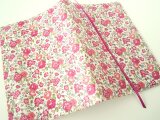 リバティの人気生地、フェリシテ Felicite(レッド)のラミネート生地(つや無)でA5サイズのノートカバーを作りました。