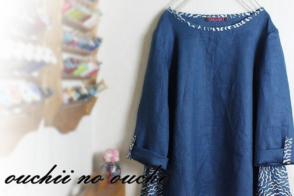 春にピッタリなしっとりリネンブルーとリバティ大人気柄Puffパフブルー系でスクエアヘムブラウスをおつくりしました。