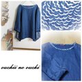 裾の変形スクエアヘム部分にリバティタナローンの大人気柄 Puffパフブルー系を切り替えを両サイドいれたブラウスです。