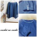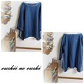 衿ぐりはボートネックに近い丁度いいあき具合でバイヤスでパイピング 、袖はそのままでもロールアップ仕様もできます。