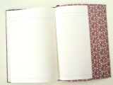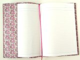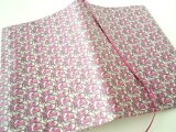 リバティの人気生地、コットンテイル Cotton Tail(ピンク)のラミネート生地(つや無)でA5サイズのノートカバーを作りました。