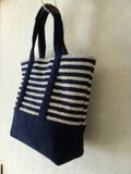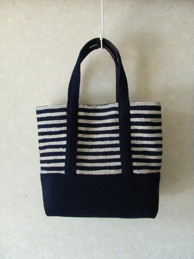 バッグ下部分(紺無地部分)は、厚い接着芯が貼ってありますのでしっかりとしています。