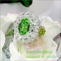 ビーズ,リング,コスチュームジュエリー,スワロフスキー,クリスタル,緑,ビーズアクセサリー,ビーズアクセ,グリーン,ガラス,キラキラ,ビーズリング,大粒,ペリドットカラー