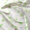 【69×115cm】サテン生地(オーガニックコットン)スミレとリボンと水玉(green-grey-yellow)