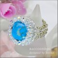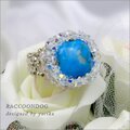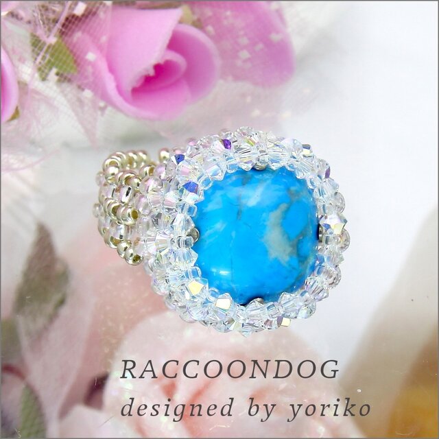 16mm×16mmの特大ハウライトターコイズをスワロフスキー60粒で包み込む様、贅沢に編み上げたビーズリングです。