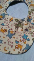 片面は可愛いくまちゃん柄です。裏面は紺色のドット柄にマリン風な蝶ネクタイを付け、とってもおしゃれに仕上げました。