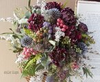 ジニア、ベッチーズブルー、・プリザーブド・ペッパーベリー、オレガノ、ペッパーベリー、タタリカ、あじさい、アゲラタムなど。ドライフラワーならではの雰囲気を長い間お楽しみいただけるアレンジメントです。