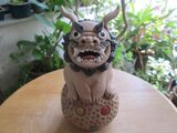 ドット柄の玉に乗ったちょっぴりおとぼけ顔のシーサーです(*^-^*)