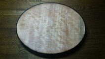 上の表面はクルミ油で、底面は黒漆で仕上げています。本当は長い木目に沿って長く木取りする