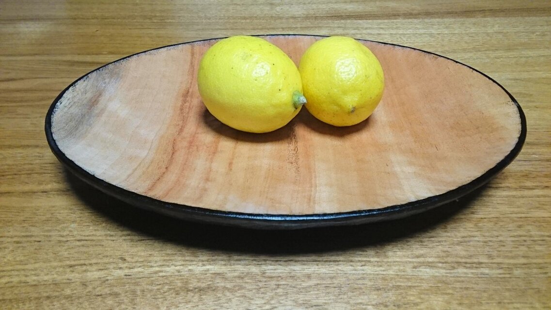 果物や小物を載せるイメージで削ったオーバルの盛り皿です。