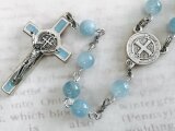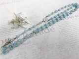 今回、マリンブルーの発色がとても綺麗に出ているアクアマリンのロザリオができました。
