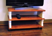 白とチークウッドカラーの便利なキャスター付きのテレビ台です。