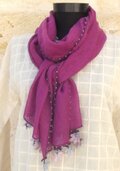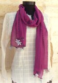 レースの花付き ふんわりストール2辺(綿混合)バイオレット