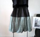 ★黒トップスを魅せるバイカラー・スカート★麻×シルク★グリーン系★