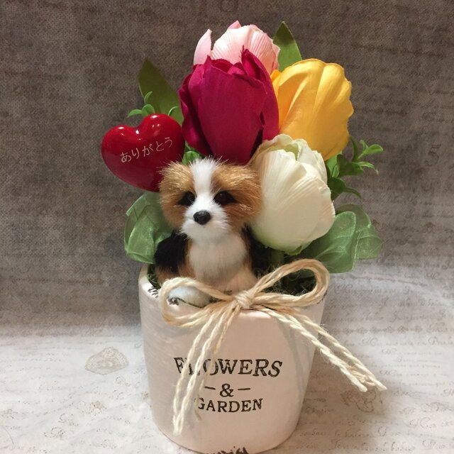 こちらは母の日や犬好きさんへのギフトにもぴったりなアートフラワーのアレンジです。