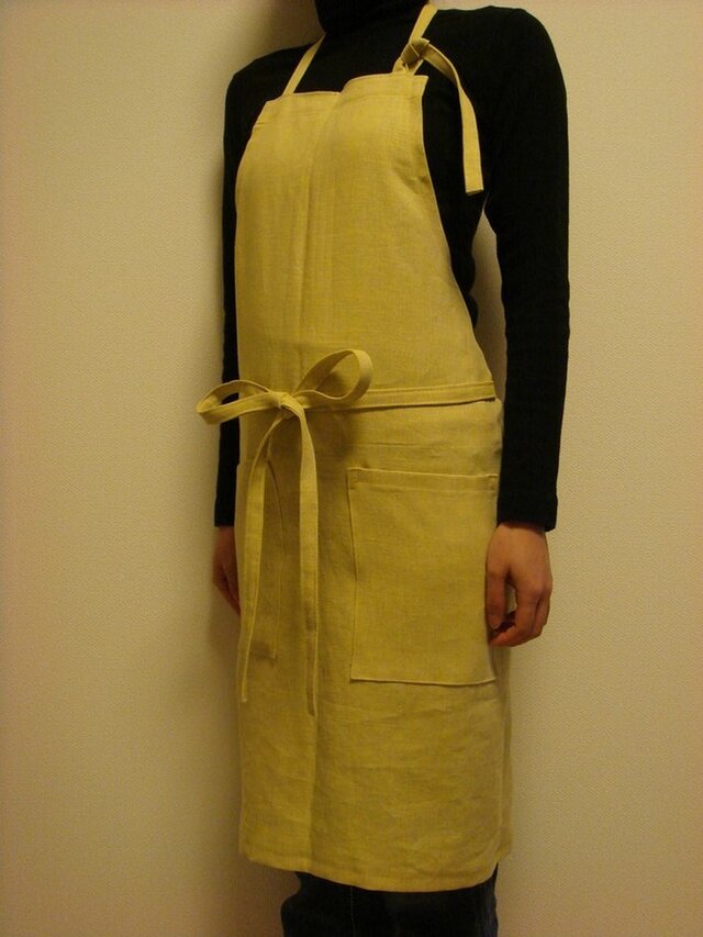 100%リネンキャンバスシャンブレーで作ったシンプルなエプロンです。