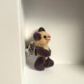 テディベアのピンバッジなのですが、ピーナツに手足が生えたような見た目です。。