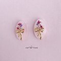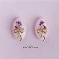 お花をリボンで束ねてブーケに見立てたピアス/イヤリングです。