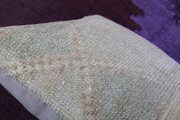 クリーニング済みのアンティークのカーペットで作られたクッションカバーです。