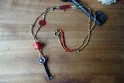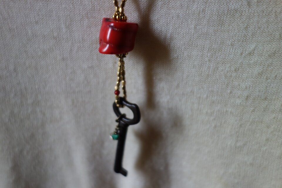 *古の無敵なネックレス@メタルゴールドビーズ+山サンゴ+古鍵