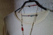 ゴールドのメタルビーズにボペミアの赤い長いビーズと丸いビーズはイスラム教の聖者ためのビーズに色々な赤のホワイトハート、そして山サンゴも!