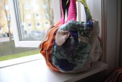 スウェーデンの蚤の市で購入した古いカーテン生地を使ったバッグです。