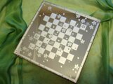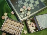 ステンドグラスの盤(ミラー)と、陶の桜型のコマのリバーシです。