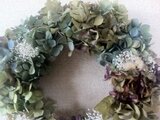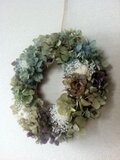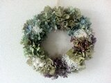 趣きのある秋色あじさいと、ブリザーブドフラワーのかすみ草、マルガリータグランテのシンプルでボリュームのあるリースです。