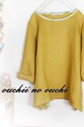 春にピッタリなしっとりリネンマスタードとリバティ大人気柄Small Susanna スモール・スザンナ イエロー系でスクエアヘムブラウスをおつくりしました。