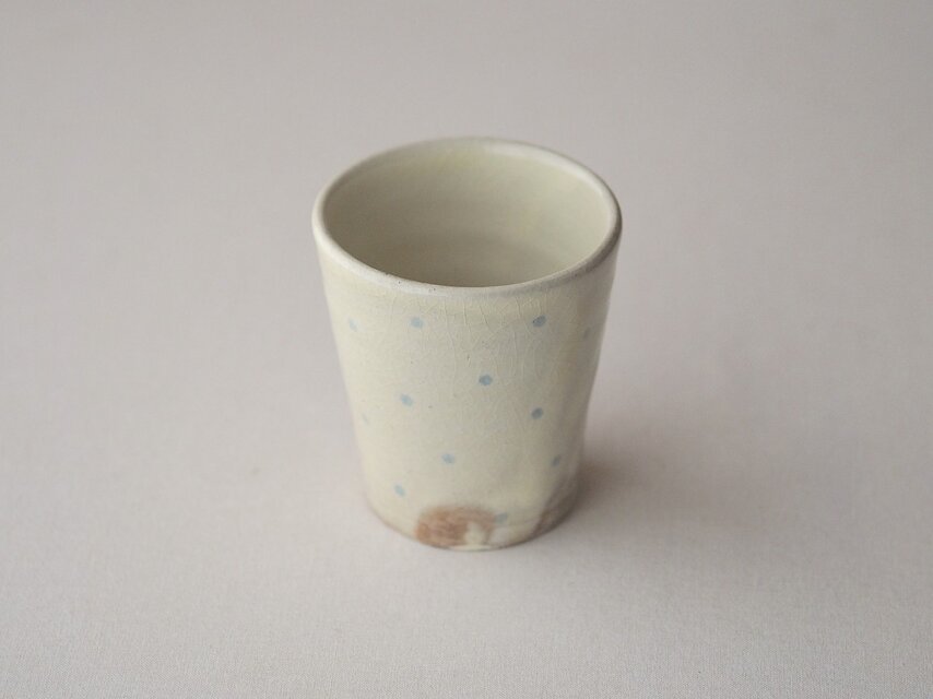 赤土の上に白化粧をした、粉引のフリーカップです。