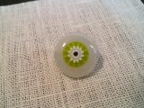 乳白色のガラスに、グリーンの大粒ミルフィオリが溶け込んでいます。