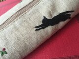 黒猫と春の花を手刺しゅうしたペンケースです。