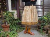 紬リメイク☆初夏の日差し色でキュートなスカート69㎝丈