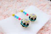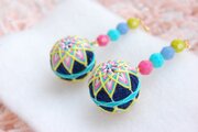 カラフル手毬をモチーフに、フランスビーズをあしらったノンホールピアスです。