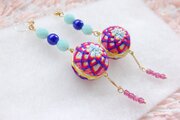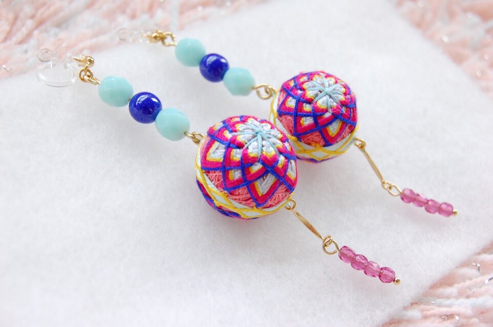 カラフルな手毬をモチーフに、台湾の夜市をイメージしたノンホールピアスです。