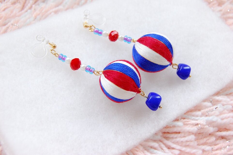 カラフル手毬をモチーフに、フランスビーズをあしらったノンホールピアスです。