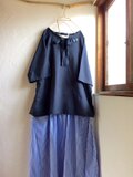 夏のさわやかな黒リネンブラウス、マニッシュ過ぎず、甘すぎず出番の多いブラウスだと思います。